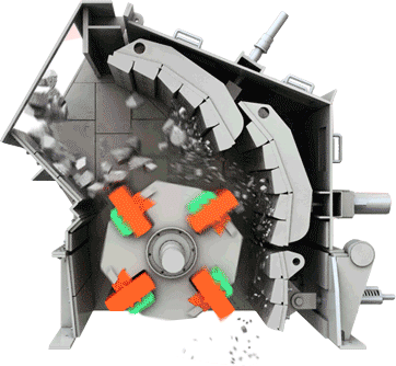反擊式破碎機(jī)的工作原理和錘式破碎機(jī)相近,都是利用高速回轉(zhuǎn)的錘頭沖擊物料而使之破碎的,不過兩者的破碎過程卻不盡相同。當(dāng)物料進(jìn)入破碎腔后即受到高速回轉(zhuǎn)的板錘的沖擊而進(jìn)行選擇性破碎。物料從沖擊過程中獲得巨大的動(dòng)能,并以高速拋向第一級(jí)反擊板,由于反擊板的反擊作用,物料再次受到破碎,被反擊板彈回來的物料又再次受到板錘的沖擊,繼續(xù)重復(fù)上述破碎過程。之后,此破碎物料又同樣以高速被拋向第二級(jí)反擊板,進(jìn)一步得到破碎。這樣,物料經(jīng)過板錘、反擊板的連續(xù)多次撞擊作用以及物料之間的相簿碰撞作用,便不斷沿自身的節(jié)理面產(chǎn)生裂縫、松散而被破碎。其力度小于板錘和反擊板之間的縫隙時(shí),就從機(jī)器下部排出成為合格產(chǎn)品。在砂石廠聯(lián)破作業(yè)一般配置在顎式破碎機(jī)后面。