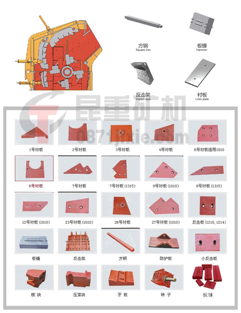 反擊式破碎機(jī)易損件示意圖: